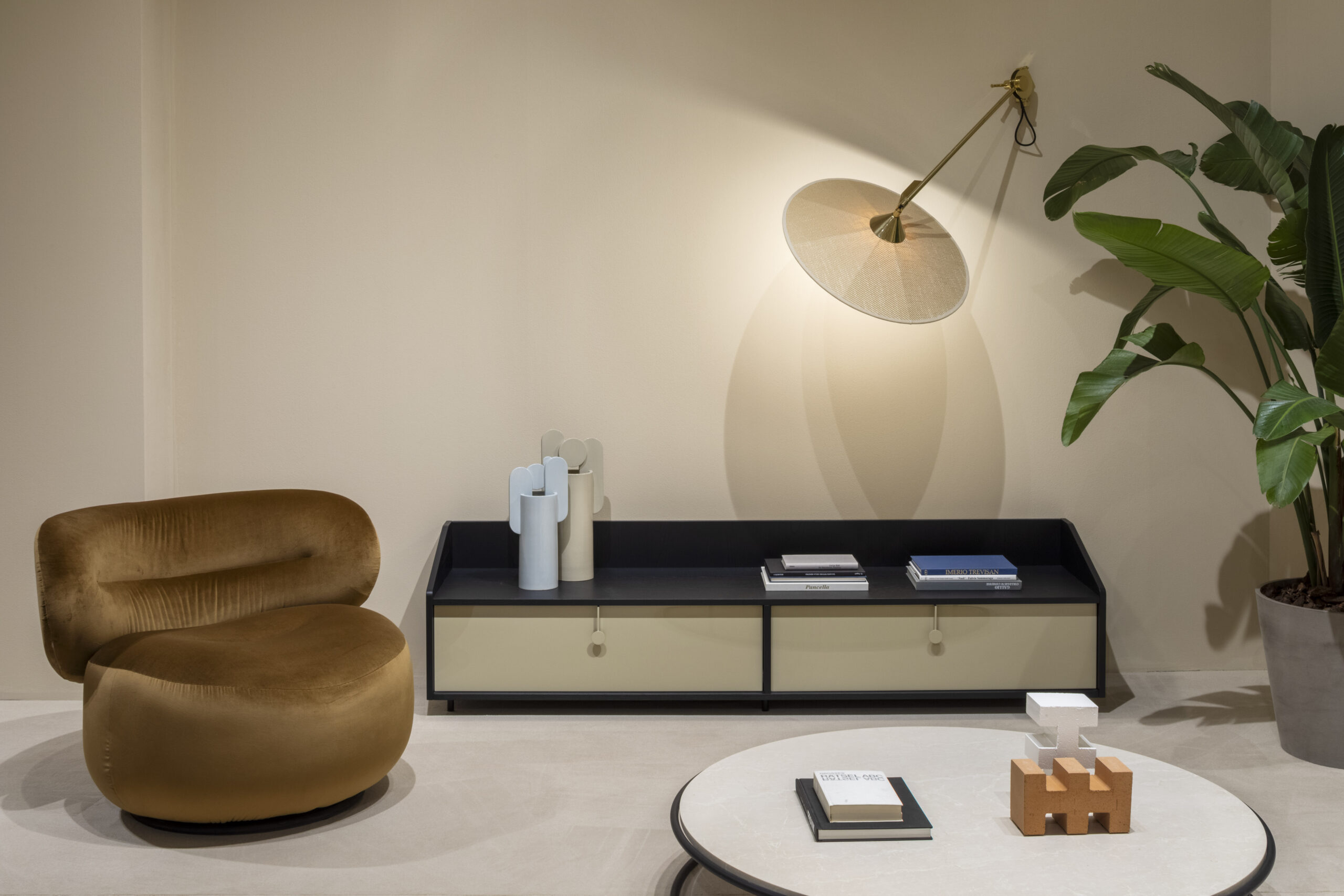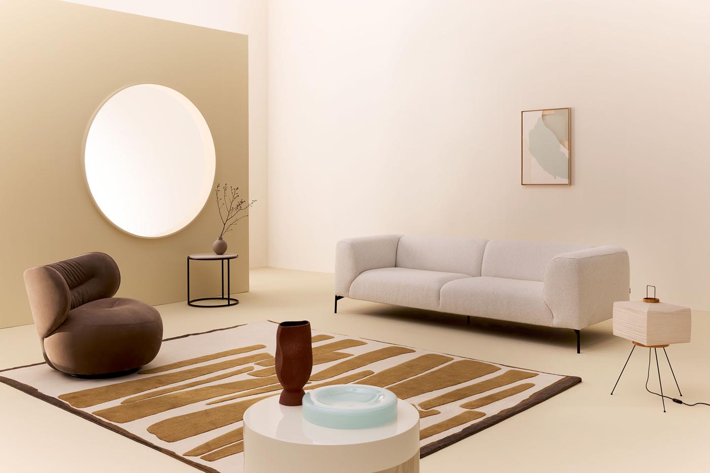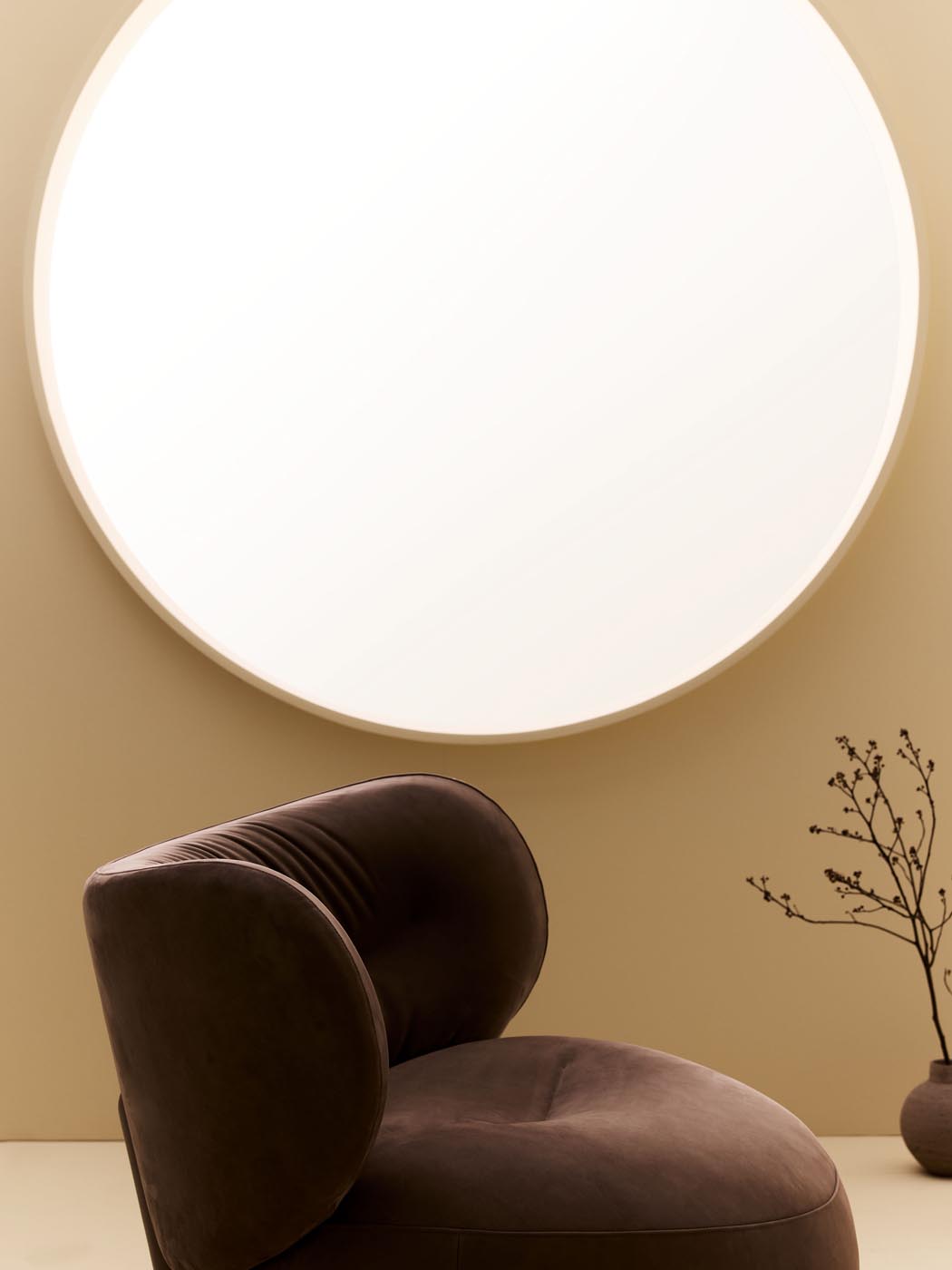 The organic design of the Amelie upholstered armchair, created by the Spanish designers Yonoh Studio, finds its expression in sinuous, rounded forms. Its distinctive feature is the gently reclined backrest, which offers reassuring, comfortable, enveloping support, while simultaneously redefining the concept of pure relaxation: free, without formalities. Soft and welcoming, the armchair moves imperceptibly, following and sustaining the backrest with its rounded lines. Also featuring a swivel base, Amelie is available in all the fabrics and leathers of the collection